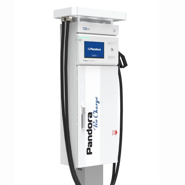Зарядная станция Pandora Pro Charge 120 предназначена для быстрой зарядки электромобилей постоянным током. Мощность станции 120 КВт. Станция имеет возможность заряжать постоянным током одновременно 2 электромобиля, мощностью до 60кВт каждый, либо один электромобиль мощностью 120кВт.